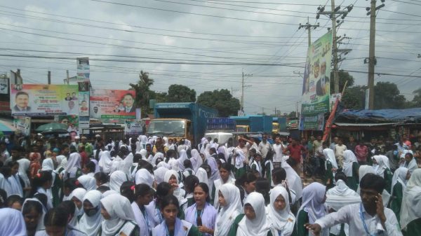 গাজীপুর সদরে স্কুল শিক্ষার্থীদের ঢাকা-ময়মনসিংহ মহাসড়ক অবরোধ