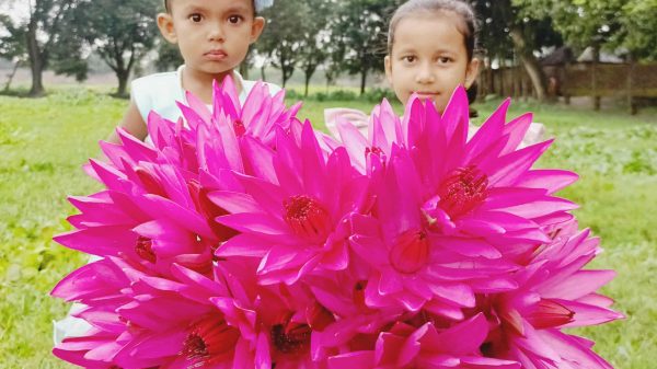 ত্রিশালের চেঁচুয়া বিলে মুগ্ধতা ছড়াচ্ছে লাল শাপলা