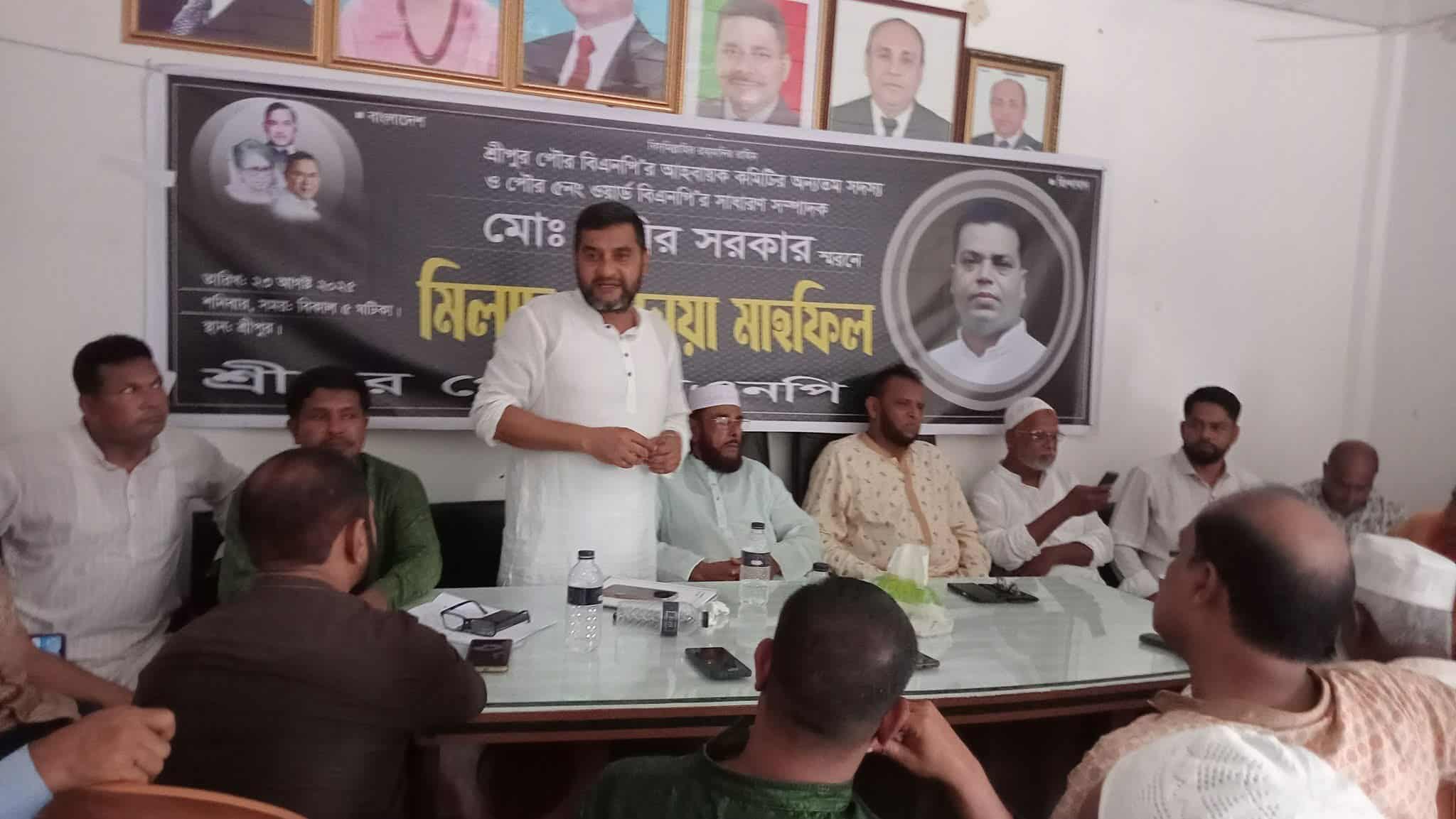 গাজীপুরে শ্রীপুর পৌর ৫ নং ওয়ার্ড বিএনপির সাধারণ সম্পাদক কবির সরকারের মৃত্যুতে দোয়া ও মিলাদ মাহফিল অনুষ্ঠিত হয়েছে। শনিবার(২৩ আগস্ট)বিকালে শ্রীপুর বিএনপির কার্যালয়ে পৌর বিএনপি'র উদ্যোগে এ দোয়া ও মিলাদ মাহফিল অনুষ্ঠিত হয়।শ্রীপুর পৌর বিএনপি'র সভাপতি আলহাজ্ব হুমায়ুন কবির সরকারের সভাপতিত্বে এবং সদস্য সচিব বিল্লাল হোসেন বেপারীর সঞ্চালনায় অনুষ্ঠানে প্রধান অতিথি হিসেবে বক্তব্য রাখেন জেলা বিএনপির সদস্য পীরজাদা আলহাজ্ব এস এম রুহুল আমিন,বক্তব্য রাখেন,উপজেলা বিএনপির আহ্বায়ক আব্দুল মোতালেব,বক্তব্য রাখেন,আহসান কবির,নজরুল ইসলাম সেলিম,খোকন প্রধান,শাহজাহান সজল,মুনসুর আহমেদপ্রমুখ।