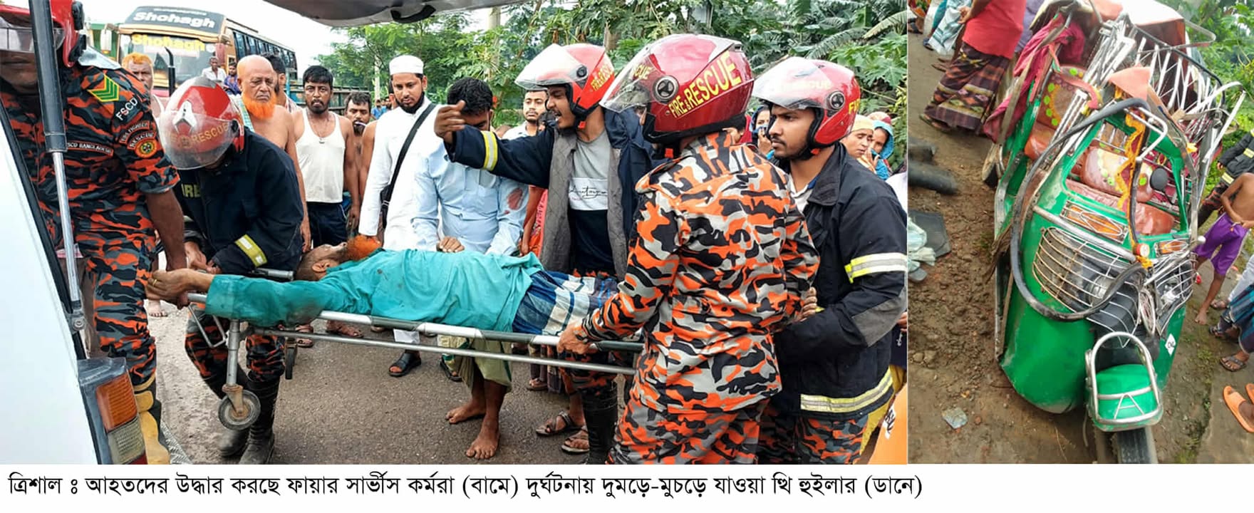 ত্রিশাল ফায়ার সার্ভিসের স্টেশন অফিসার সাদিকুর জনান, খবর পেয়ে ফায়ার সার্ভিসের দু’টি ইউনিট ঘটনাস্থল থেকে হতাহতোদের উদ্ধার করা হয়। আশংকাজনক অবস্থায় একজনকে ময়মনসিংহ মেডিকেল কলেজ হাসপাতালে প্রেরণ করা হয়। আহত ব্যাক্তির কাছ থেকে কিছু টাকা উদ্ধার করা হয়। যা তাঁর পরিবারের কাছে হস্তান্তর করা হয়েছে। ত্রিশাল থানার অফিসার ইনচার্জ মনসুর আহমেদ জানান, মরদেহ উদ্ধার করা হয়েছে। পরিবারের কোন আপত্তি না থাকায় তাদের কাছে মরদেহ হস্তান্তর করা হয়েছে।