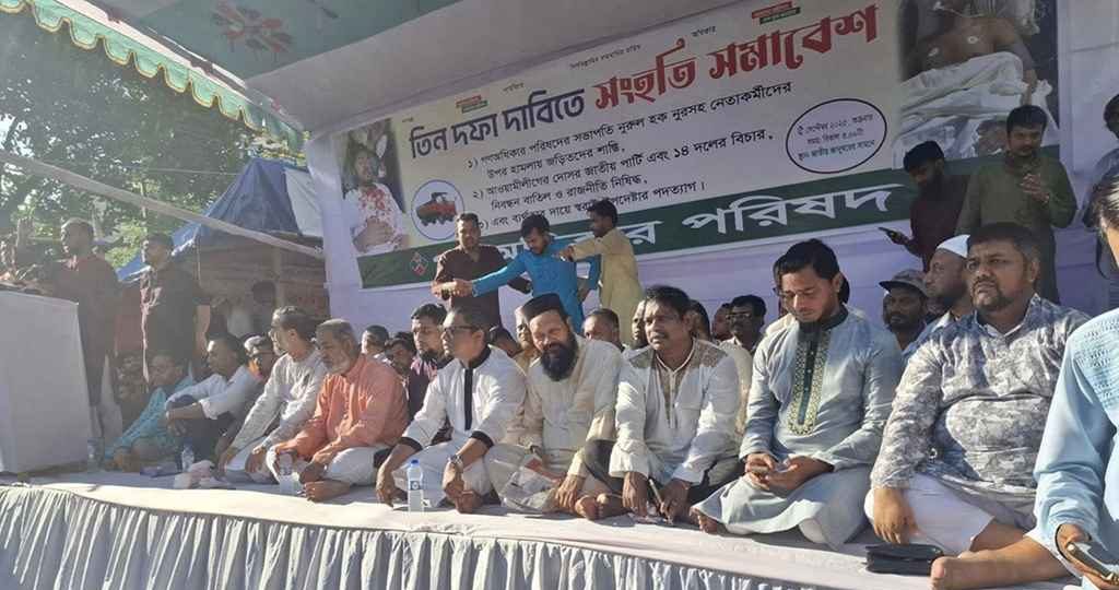 গণঅধিকার পরিষদের সভাপতি নুরুল হক নুরসহ নেতাকর্মীদের ওপর হামলায় জড়িতদের শাস্তি, জাতীয় পার্টি এবং ১৪ দলের বিচার, নিবন্ধন বাতিল ও রাজনীতি নিষিদ্ধসহ ব্যর্থতার দায়ে স্বরাষ্ট্র উপদেষ্টার পদত্যাগের দাবিতে এ সমাবেশের আয়োজন করা হয়। তবে তিন দফা দাবি হলেও সমাবেশে বেশিরভাগ বক্তাই জাতীয় পার্টি নিষিদ্ধের দাবি জানিয়ে বক্তব্য রাখছেন।