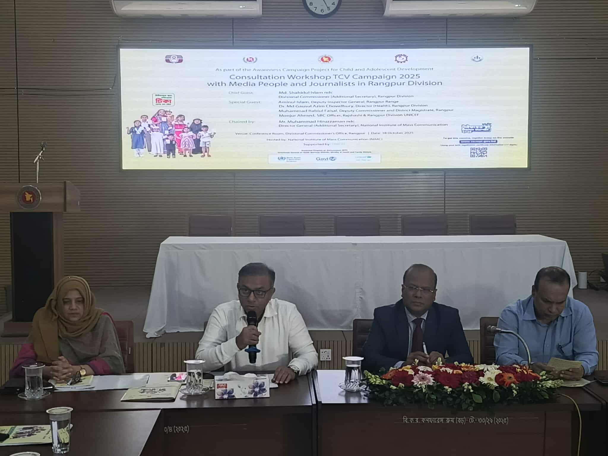 রংপুরে টাইফয়েড টিকা (টিসিভি)-২৫ সংক্রান্ত গণমাধ্যমকর্মীদের সাথে বিভাগীয় পর্যায়ের পরামর্শ কর্মশালা অনুষ্ঠিত হয়েছে। শনিবার (১৮ অক্টোবর) সকাল ১০ টায় রংপুর বিভাগীয় কমিশনার কার্যালয়ের হলরুমে রুমে এনআইএমসি’র (ন্যাশনাল ইনস্টিটিউট অব মাস কমিউনিকেশন) এ কর্মশালার আয়োজন করেন।
