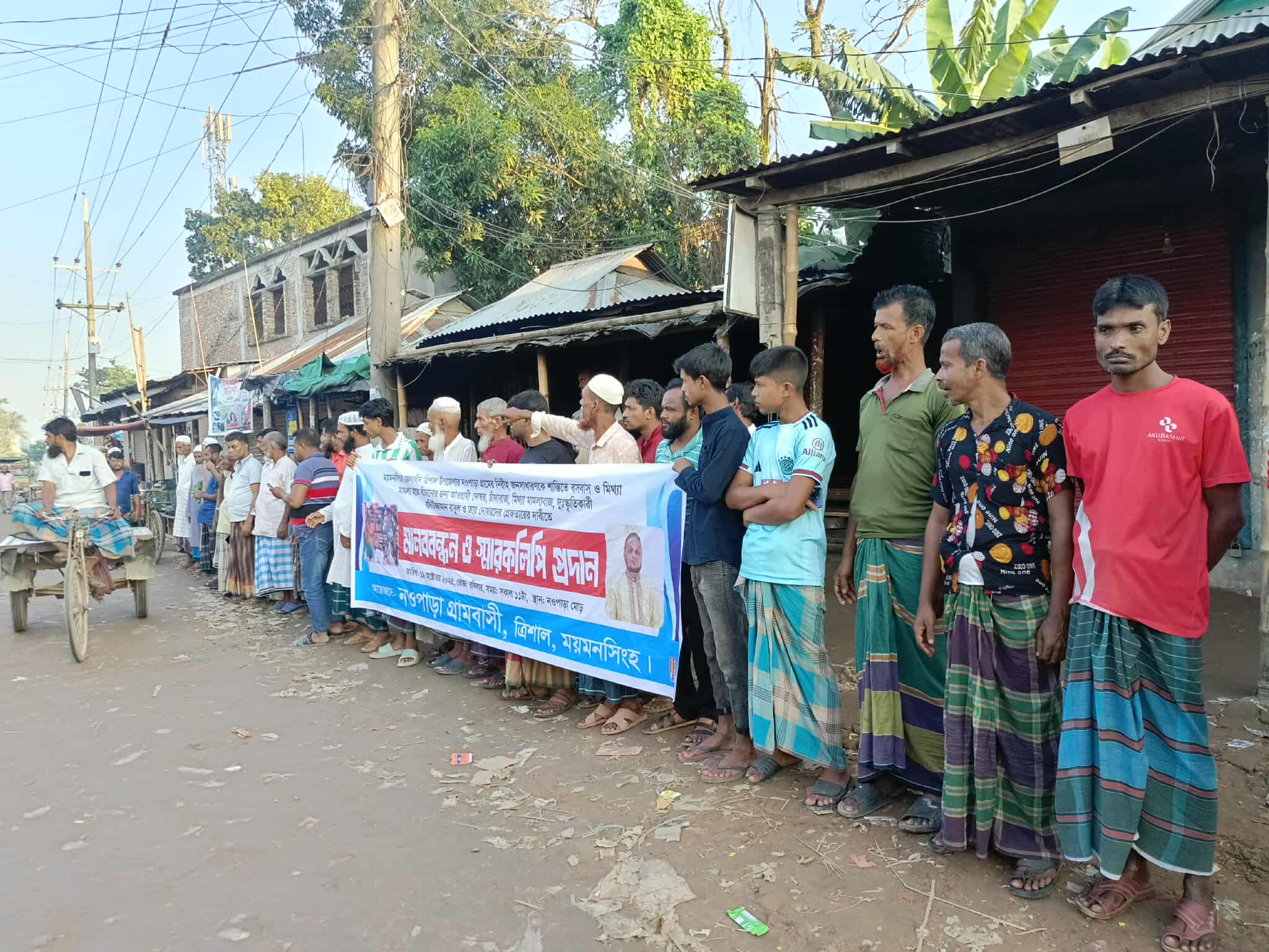 ত্রিশালে ভূমিদস্যু বাবুলকে গ্রেফতার দাবিতে মানববন্ধন
