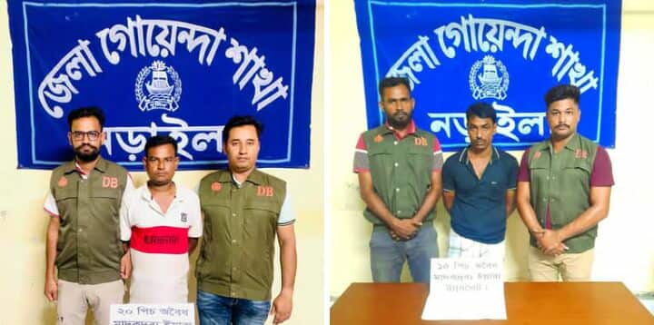 অপরদিকে গত ২০ অক্টোবর'২৫ রাত ২৩ঃ০৫ ঘটিকার সময় ঠাকুর বিশ্বাস(৪৩) নামের ০১ জন মাদক কারবারিকে গ্রেফতার করেছে নড়াইল জেলা গোয়েন্দা পুলিশ। গ্রেফতারকৃত ঠাকুর বিশ্বাস(৪৩) নড়াইল সদর থানাধীন গোবরা গ্রামের সুভাষ বিশ্বাসের ছেলে। গোপন সংবাদের ভিত্তিতে জেলা গোয়েন্দা শাখার অফিসার ইনচার্জ মোঃ আব্দুল খালেক এর তত্ত্বাবধানে এসআই (নিঃ) জাহাঙ্গীর আলম সঙ্গীয় ফোর্সসহ অভিযান চালিয়ে নড়াইল সদর থানাধীন ৯ নং সিংগাশৈলপুর ইউনিয়নের গোবরা গ্রামস্ত জনৈক আদমের সোয়া মিলের সামনে হতে তাকে গ্রেফতার করা হয়। ধৃত আসামির নিকট হইতে অবৈধ মাদকদ্রব্য ১৫ (পনেরো) পিস ইয়াবা ট্যাবলেট জব্দ করা হয়। এ সংক্রান্তে নড়াইল সদর থানায় মাদকদ্রব্য নিয়ন্ত্রণ আইনে একটি মামলা রুজু প্রক্রিয়াধীন রয়েছে। আসামিদেরকে বিজ্ঞ আদালতে সোপর্দ করা হয়েছে।