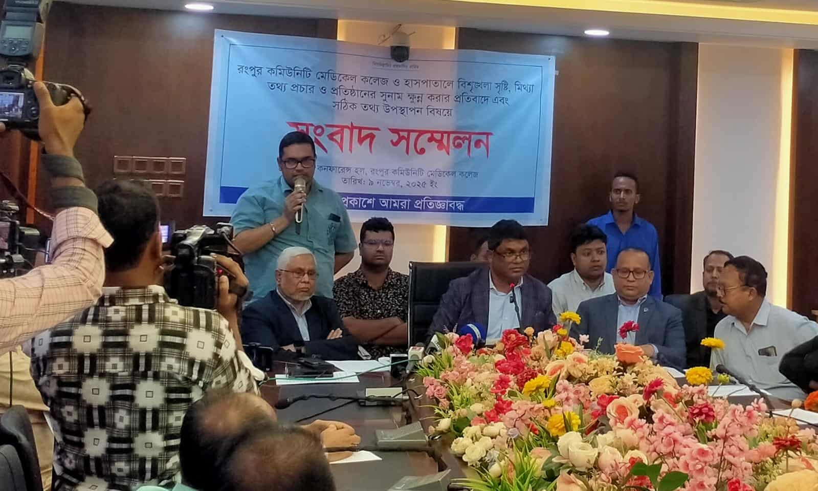 রংপুর কমিউনিটি মেডিকেল কলেজ ও হাসপাতালের উদ্যোগে এক সংবাদ সম্মেলনে প্রতিষ্ঠানটির কর্তৃপক্ষ সম্প্রতি ঘটে যাওয়া এক রোগীর মৃত্যুর ঘটনার বিষয়ে বিস্তারিত ব্যাখ্যা প্রদান করেছেন। শনিবার (৯ নভেম্বর) সন্ধ্যায় হাসপাতালের মিলনায়তনে অনুষ্ঠিত সংবাদ সম্মেলনে উপস্থিত ছিলেন হাসপাতালের প্রশাসনিক কর্মকর্তারা, চিকিৎসকবৃন্দ ও বিভিন্ন প্রিন্ট মিডিয়ার সাংবাদিগণ। সংবাদ সম্মেলনে রংপুর কমিউনিটি হাসপাতালের এম. ডি নাজমুল হাসান সরকার লিখিত বক্তব্য পাঠ করে জানান, গত ৬ নভেম্বর ২০২৫ তারিখে নীলফামারীর ডোমার উপজেলার বামুনিয়া এলাকার ৫৫ বছর বয়সী মোকসেদুল ইসলাম নামের এক রোগীর মৃত্যু পরবর্তী কিছু অনাকাঙ্ক্ষিত পরিস্থিতির সৃষ্টি হয়।