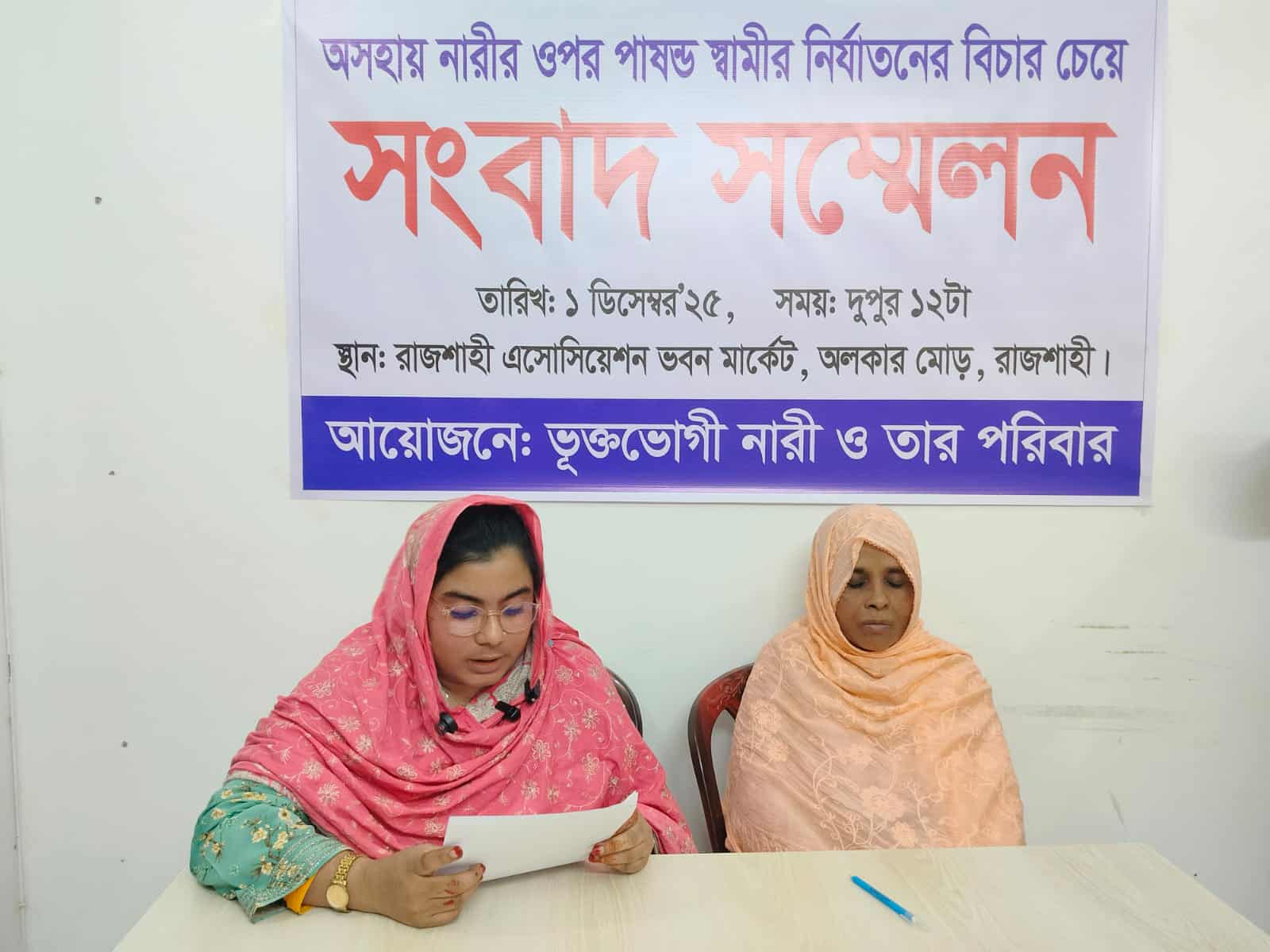 রাজশাহীতে ভুক্তভোগী নারীর সংবাদ সম্মেলন
