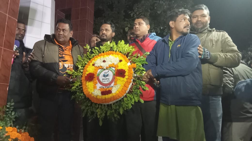 বিজয় দিবস উপলক্ষে জাতির শ্রেষ্ঠ সন্তান বীর শহীদদের প্রতি গভীর শ্রদ্ধা জানিয়ে যথাযোগ্য মর্যাদা ও ভাবগাম্ভীর্যের সঙ্গে দিবসটি উদযাপন করেছে রাজশাহী বরেন্দ্র প্রেসক্লাব।এ উপলক্ষে ১৬ ডিসেম্বর প্রথম প্রহর রাত ১২টা ১ মিনিটে রাজশাহী কলেজ শহীদ মিনারে পুষ্পস্তবক অর্পণের মধ্য দিয়ে কর্মসূচির সূচনা হয়।এ সময় রাজশাহী বরেন্দ্র প্রেসক্লাবের সভাপতি ও সাধারণ সম্পাদকসহ কার্যনির্বাহী কমিটির নেতৃবৃন্দ এবং সাধারণ সদস্যরা উপস্থিত ছিলেন। পুষ্পস্তবক অর্পণ শেষে জাতির শ্রেষ্ঠ সন্তান বীর শহীদদের স্মরণে কিছুক্ষণ নীরবতা পালন করা হয়। পরে মহান মুক্তিযুদ্ধে আত্মদানকারী শহীদদের আত্মার মাগফিরাত এবং দেশ ও জাতির শান্তি, সমৃদ্ধি ও কল্যাণ কামনায় বিশেষ দোয়া অনুষ্ঠিত হয়। অনুষ্ঠানে বক্তব্য দেন রাজশাহী বরেন্দ্র প্রেসক্লাবের সভাপতি রেজাউল করিম। তিনি বলেন, “মহান বিজয় দিবস বাঙালি জাতির ইতিহাসে আত্মপরিচয় ও আত্মমর্যাদার সবচেয়ে গৌরবময় অধ্যায়। ১৯৭১ সালের মুক্তিযুদ্ধে বীর শহীদদের রক্তের বিনিময়ে অর্জিত এই স্বাধীনতা কোনো দয়া নয়—এটি একটি জাতির সাহস, ত্যাগ ও সংগ্রামের ফসল। এই বিজয়ের চেতনা আমাদের প্রতিদিনের কাজ, চিন্তা ও লেখায় প্রতিফলিত হতে হবে। সাংবাদিকতা হবে অন্যায়ের বিরুদ্ধে প্রতিরোধের শক্তিশালী হাতিয়ার এবং মানুষের অধিকার রক্ষার নির্ভীক কণ্ঠস্বর।”তিনি আরও বলেন, “মুক্তিযুদ্ধের চেতনা থেকে বিচ্যুতি মানেই ইতিহাসের সঙ্গে বিশ্বাসঘাতকতা। তাই একটি মানবিক, ন্যায়ভিত্তিক ও বৈষম্যহীন সমাজ গঠনে সাংবাদিকদের ভূমিকা আরও দায়িত্বশীল ও সচেতন হতে হবে।”