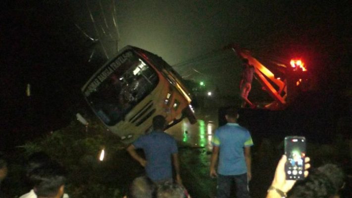 এ ঘটনায় নাফিস শাহরিয়ার আকাশ নামে এক মোটরসাইকেল আরোহী গুরুতর অসুস্থ হয়ে ঘটনাস্থলেই মারা যায়। রাহি নামে অপর এক মোটরসাইকেল আরোহীকে ফায়ার সার্ভিস ও স্থানীয়দের সহায়তায় উদ্ধার করে অসুস্থ অবস্থায় রংপুর মেডিকেল হাসপাতালে পাঠানো হয়। এছাড়াও বাসে থাকা অন্তত ২০ জন যাত্রী আহত হয়। আহতদের গাইবান্ধা জেলা হাসপাতালে ভর্তি করা হয়েছে।