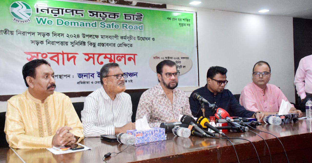 জাতীয় নিরাপদ সড়ত দিবস ২০২৪ উপলক্ষে মাসব্যাপী কর্মসূচি ঘোষণা ও সড়ক নিরাপত্তা বিষয়ে আলোকপাত করার নিমিত্তে ১ অক্টোবর (মঙ্গলবার) নিরাপদ সড়ক চাই(নিসচা) এর উদ্যোগে ঢাকার জাতীয় প্রেস ক্লাবের জহুর হোসেন চৌধুরী মিলনায়তনে আয়োজিত সংবাদ সম্মেলনে সড়ক দুর্ঘটনামুক্ত বাংলাদেশ গড়তে ‘সড়ক নিরাপত্তা আইন’ নামে নতুন একটি আইন প্রণয়নের দাবি জানিয়েছেন, নিসচার চেয়ারম্যান চিত্রনায়ক ইলিয়াস কাঞ্চন।