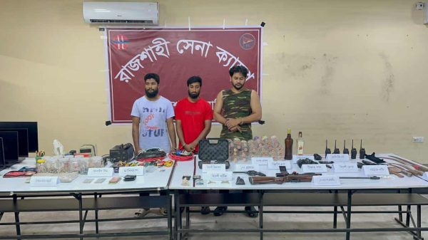 শফিকুল ইসলাম ইমন, রাজশাহী: রাজশাহীর বোয়ালিয়া থানার দরিখরবোনা এলাকায় ৪০ ইস্ট বেঙ্গল (মেকানাইজড) এর একটি বিশেষ অভিযান পরিচালিত হয়। দীর্ঘ ১ মাসের গোয়েন্দা নজরদারির ভিত্তিতে পরিচালিত এ অভিযানে অবৈধ অস্ত্র