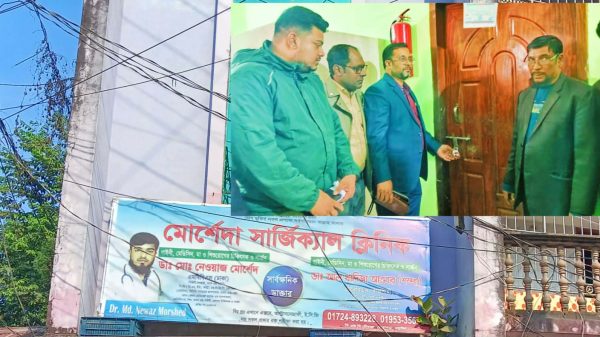 খন্দকার ছদরুজ্জামান,নড়াইল; নড়াইলের লোহাগড়া উপজেলায় রোগীর পেটে গজ কাপড় রেখে সেলাই দেয়ার অভিযোগে মোর্শেদা সার্জিকাল ক্লিনিকের অপারেশন থিয়েটার সিলগালাসহ ক্লিনিকের সকল কার্যক্রম পরবর্তী নির্দেশ না দেয়া পর্যন্ত বন্ধ রাখার নির্দেশ