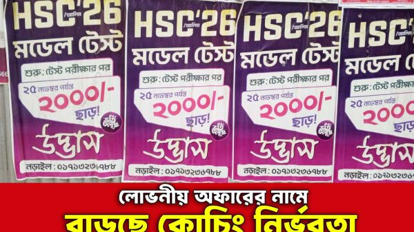 খন্দকার ছদরুজ্জামান,নড়াইল; এসএসসি ও দালিখ পরীক্ষার সময় ঘনিয়ে এলে কোচিং সেন্টারগুলোর প্রতিযোগিতা যেন ভিন্ন মাত্রা নেয়। শহরের বিভিন্ন দেয়ালে সম্প্রতি চোখে পড়ছে “উদ্ভাস” নামের একটি কোচিং সেন্টারের আকর্ষণীয় পোস্টার “এসএসসি