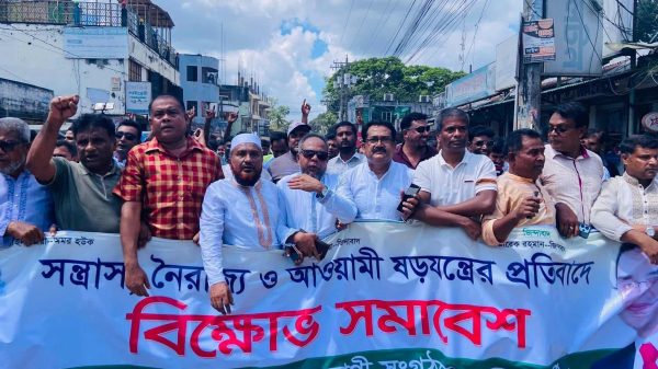 এস.এম দুর্জয়, গাজীপুর: সন্ত্রাস,নৈরাজ্য ও আওয়ামী ষড়যন্ত্রের প্রতিবাদে গাজীপুরের শ্রীপুরে বিএনপির বিক্ষোভ মিছিল ও সমাবেশ অনুষ্ঠিত হয়েছে।মঙ্গলবার(২৩ সেপ্টেম্বর)বেলা ১১ টায় শ্রীপুর টেংরা রাস্তার মোড় থেকে বিক্ষোভ মিছিল শুরু করে পৌর
