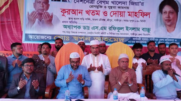 এস এম দুর্জয়, গাজীপুর: বিএনপি’র চেয়ারপার্সন সাবেক প্রধানমন্ত্রী বেগম খালেদা জিয়ার সুস্থতার জন্য বিএনপির কেন্দ্রীয় কমিটির সহ স্বাস্থ্য বিষয়ক সম্পাদক ও গাজীপুর-৩ আসনের বিএনপির মনোনীত প্রার্থী অধ্যাপক ডাক্তার এস এম