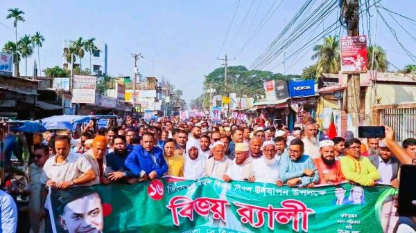 এস.এম দুর্জয়, গাজীপুর: মহান বিজয় দিবস উপলক্ষ্যে গাজীপুরের শ্রীপুর উপজেলা ও পৌর বিএনপির উদ্যোগে বিজয় র্যালি ও সংক্ষিপ্ত আলোচনা সভা অনুষ্ঠিত হয়েছে।(১৬ ডিসেম্বর)সোমবার সকাল ১০টায় বর্ণাঢ্য বিজয় র্যালিটি শ্রীপুর টেংরা