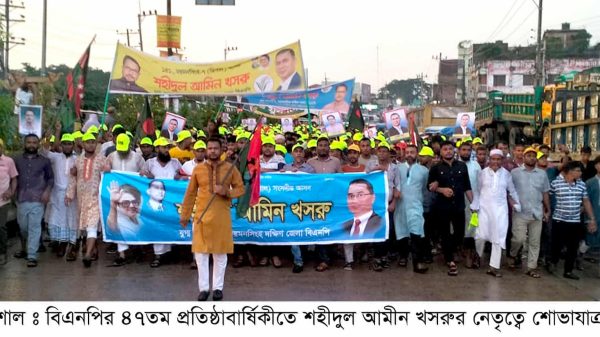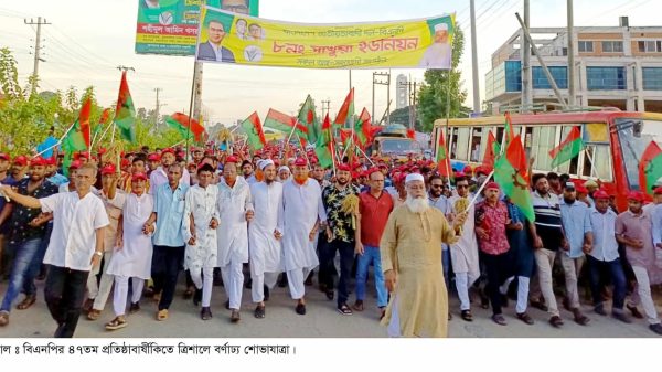 এস এম মাসুদ রানা, ত্রিশাল (ময়মনসিংহ): বাংলাদেশ জাতীয়বাতাদী দলের (বিএনপি) ৪৭তম প্রতিষ্ঠাবার্ষিকী উপলক্ষে ময়মনসিংহের ত্রিশালে বর্ণাঢ্য শোভাযাত্রা ও সমাবেশ অনুষ্ঠিত হয়েছে। বুধবার (৩ সেপ্টেম্বর) বিকেলে পৌর শহরের লেকের পাড় থেকে