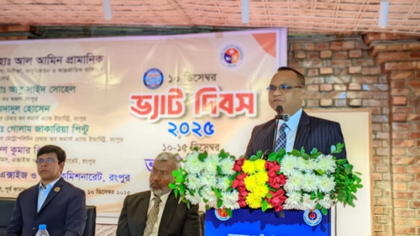 রিয়াজুল হক সাগর, রংপুর: “ভ্যাট দিয়ে গড়ব দেশ, বৈষম্যহীন বাংলাদেশ” এই শ্লোগানকে প্রতিপাদ্য করে বুধবার (১০ ডিসেম্বর) সকালে ভ্যাট দিবস ও ভ্যাট সপ্তাহ, ২০২৫ উদযাপন উপলক্ষে আগামী চাষি রংপুর লিঃ,