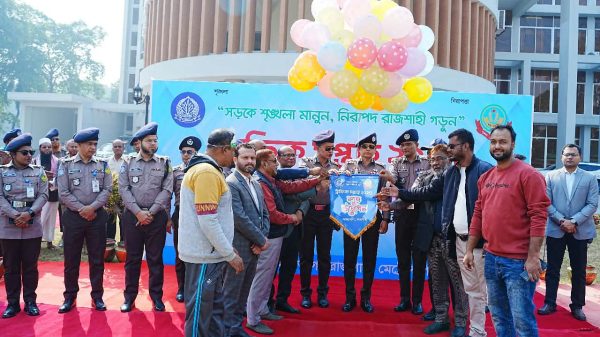 শফিকুল আলম ইমন,রাজশাহী: সড়কে শৃঙ্খলা প্রতিষ্ঠা ও জনসচেতনতা বৃদ্ধির লক্ষ্যে রাজশাহীতে আনুষ্ঠানিকভাবে ট্রাফিক সপ্তাহ শুরু –২০২৫। রোববার (০৭ ডিসেম্বর) সকাল সাড়ে ১০টায় রাজশাহী মেট্রোপলিটন পুলিশ (আরএমপি) হেডকোয়ার্টারের সামনে বেলুন ও