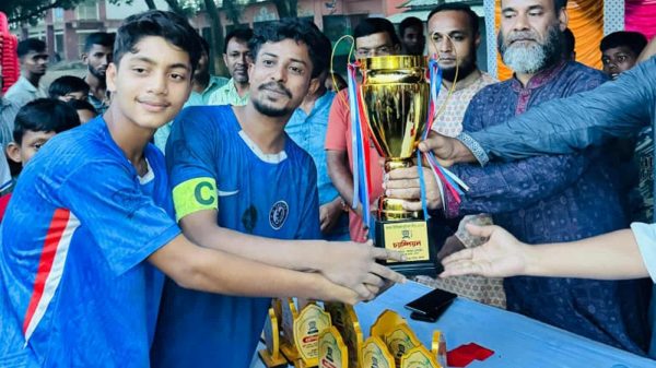 এস এম মাসুদ রানা, ত্রিশাল: ময়মনসিংহের ত্রিশালে বাগান ফুটবল প্রিমিয়ার লীগ সিজন-৩ ফাইনাল খেলাটি বিকেলে উপজেলার সদর ইউনিয়নের বাগান ইসলামিয়া মাদ্রাসা মাঠে অনুষ্ঠিত হয়েছে। রাগামারা টপ ওয়ান বনাম নওপাড়া ইউনাইটেড
